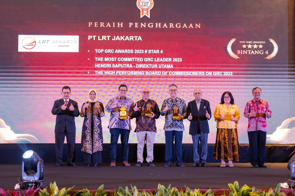 Jakarta – Melalui penerapan komitmen Tata Kelola Perusahaan (Good Corporate Governance/GCG), Manajemen Risiko dan Kepatuhan (Compliance) yang baik, PT LRT Jakarta berhasil meraih tiga penghargaan pada ajang TOP GRC (Governance, Risk, and Compliance) Awa