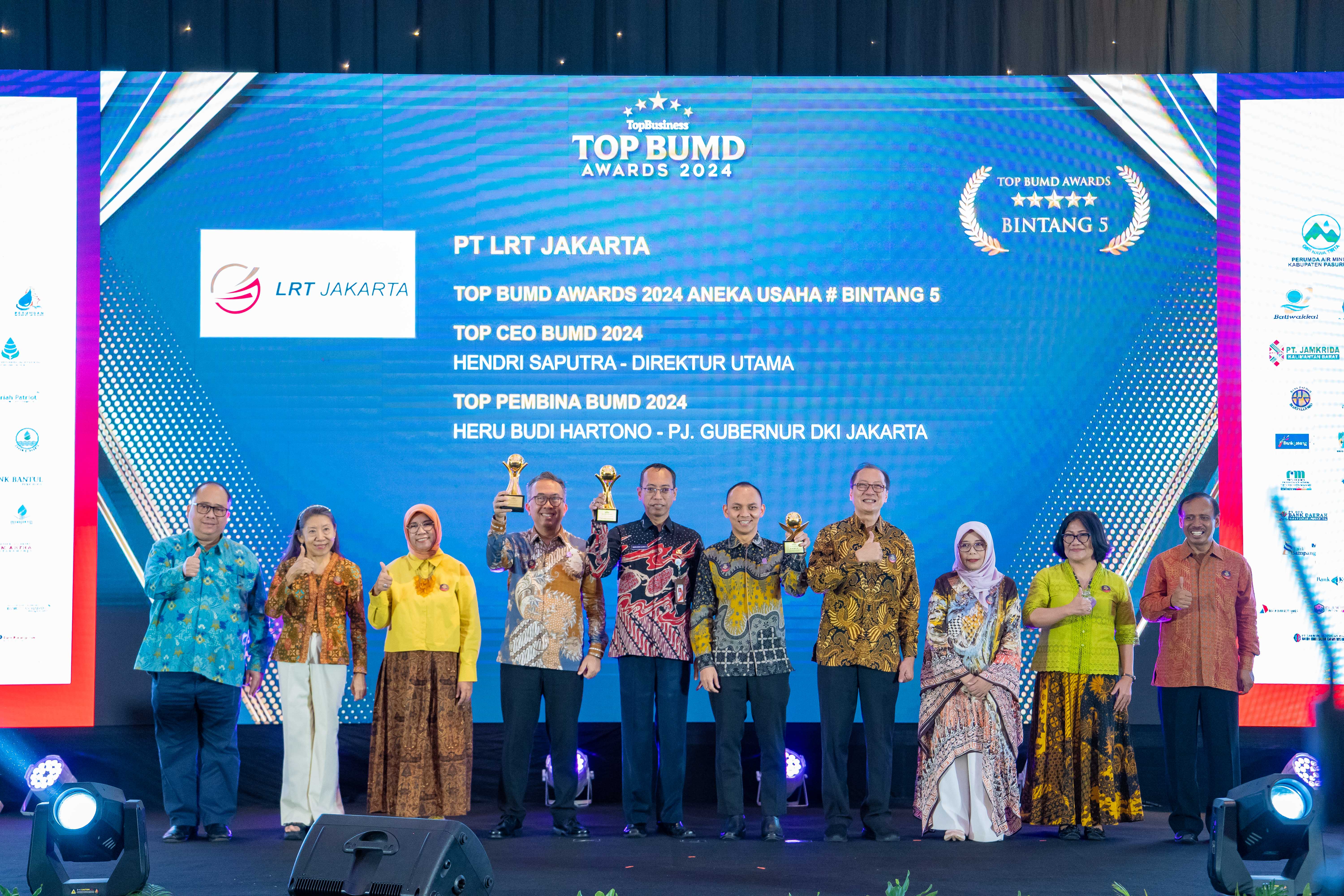 Rabu, 20 Maret 2024 – PT LRT Jakarta kembali menorehkan prestasi membanggakan di awal tahun 2024 ini. Kali ini, PT LRT Jakarta berhasil meraih dua penghargaan dalam acara bergengsi Top BUMD Awards 2024, yaitu kategori BUMD Aneka Usaha Bintang 5 serta pe