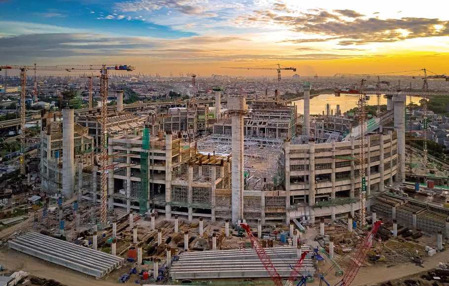 Pembangunan Jakarta International Stadium (JIS) yang berlokasi di Kota Jakarta Utara terus berjalan intensif mendekati masa penyelesaiannya yang ditargetkan rampung pada akhir tahun ini.